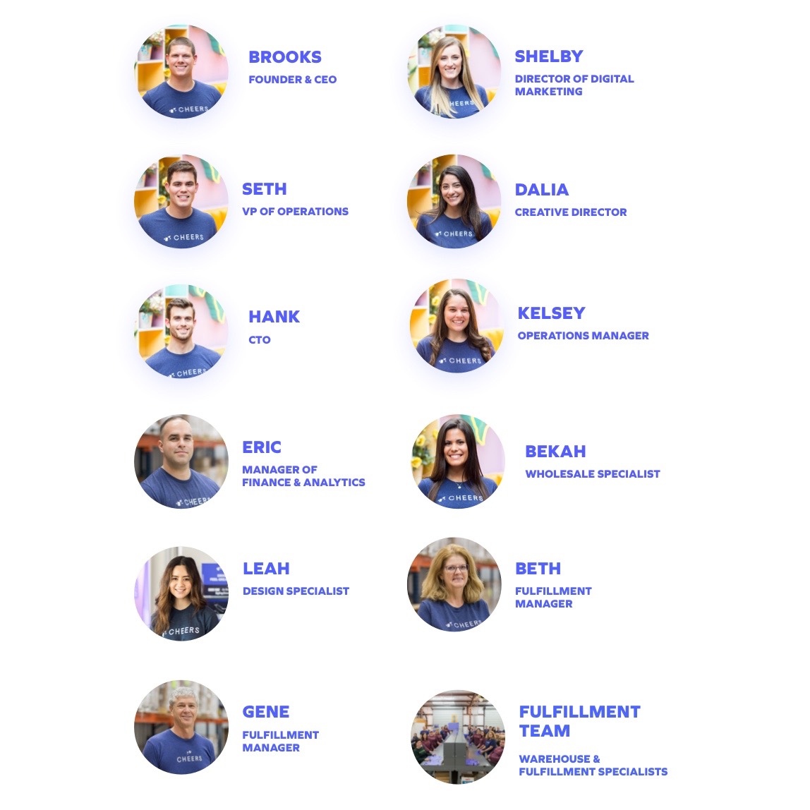 We have built an awesome and passionate team dedicated to Cheersâ mission of âbringing people together by promoting fun, responsible, and health-conscious alcohol consumption.â Everyone on our team is excited about the category of alcohol-related health and are working to make it a mainstay in the American consciousness. Our goal is for Cheers to become a household name when it comes to alcohol-related health and the products someone reaches for anytime they drink alcohol. In our eyes, Cheers is to alcohol as Kleenex is to a runny nose. â