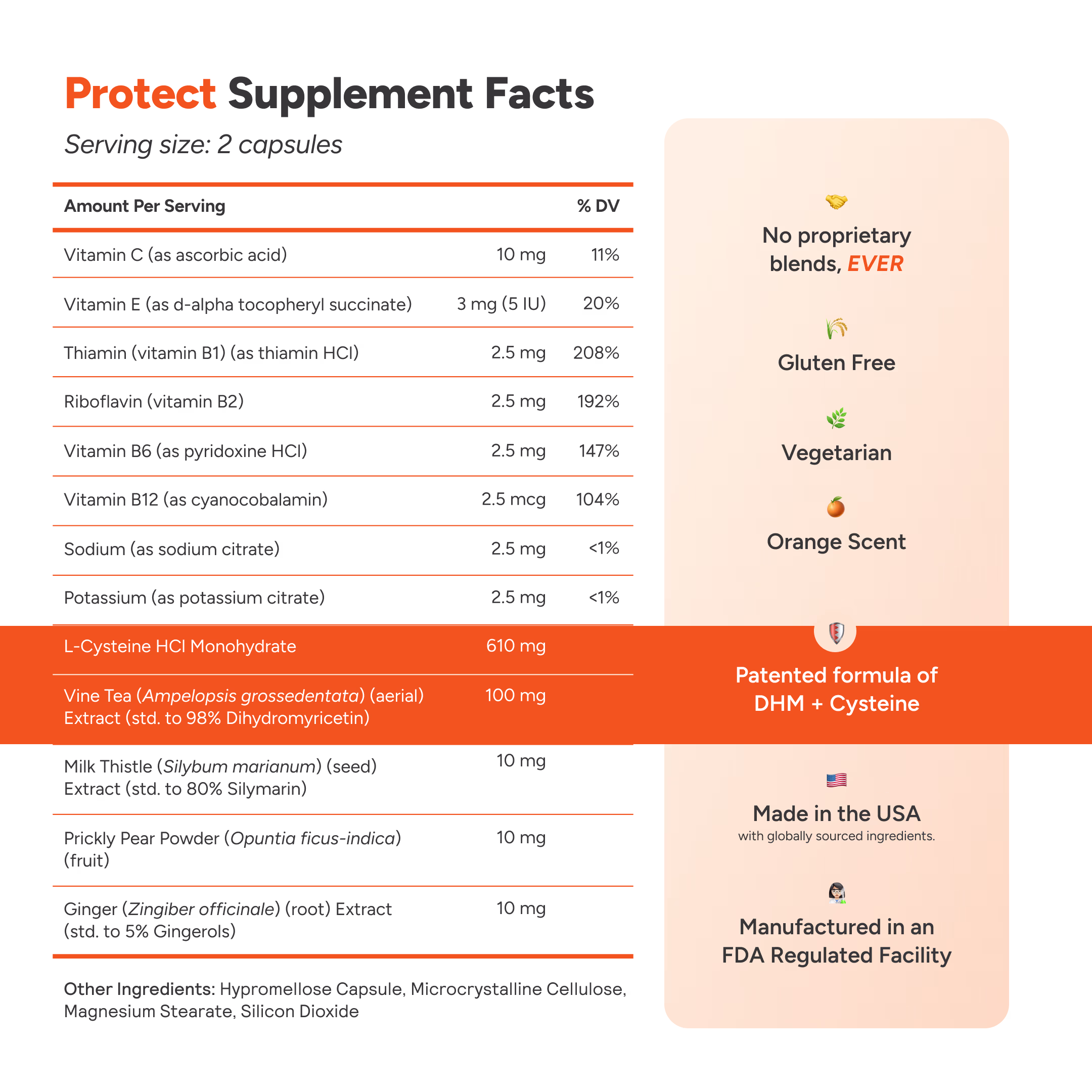 In a human study conducted for our granted patent, users of Cheers Restore felt an average of 50%+ better the next day across 8 typical effects. Wake up feeling 50% better or your money back! 2
