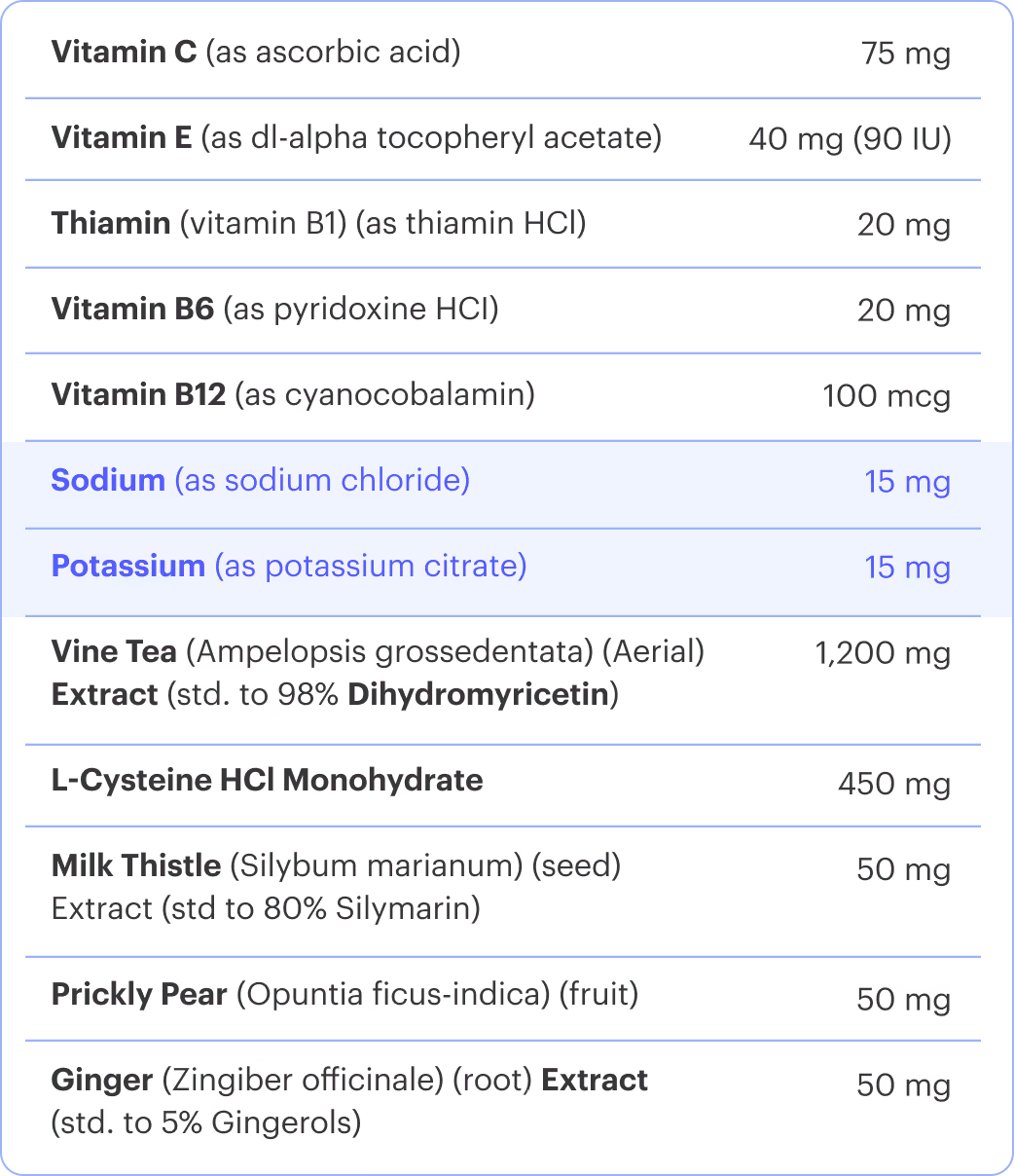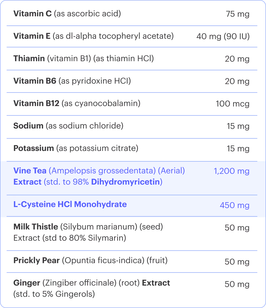 In a human study conducted for our granted patent, users of Cheers Restore felt an average of 50%+ better the next day across 8 typical effects. Wake up feeling 50% better or your money back! 2